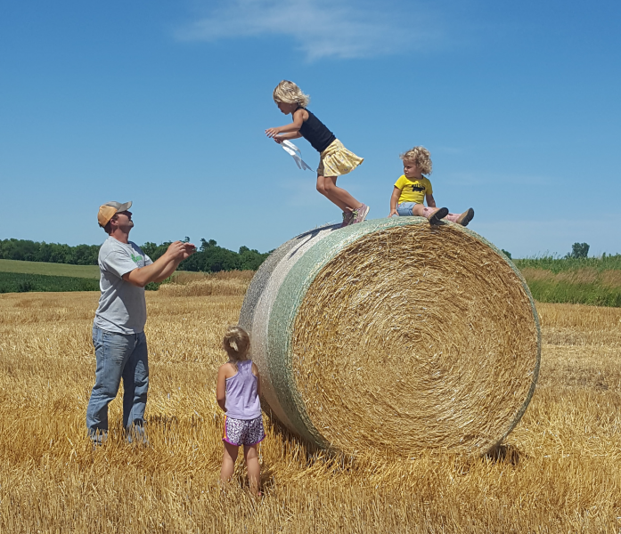 Becky talked about the conference as we stood in the freshly-cut wheat field, her eyes always looking around to find four little girls as they played, helped Dad and Grandpa, and climbed on straw bales in their shorts and tennis shoes. I asked her how she makes sure her kids are safe on the farm.